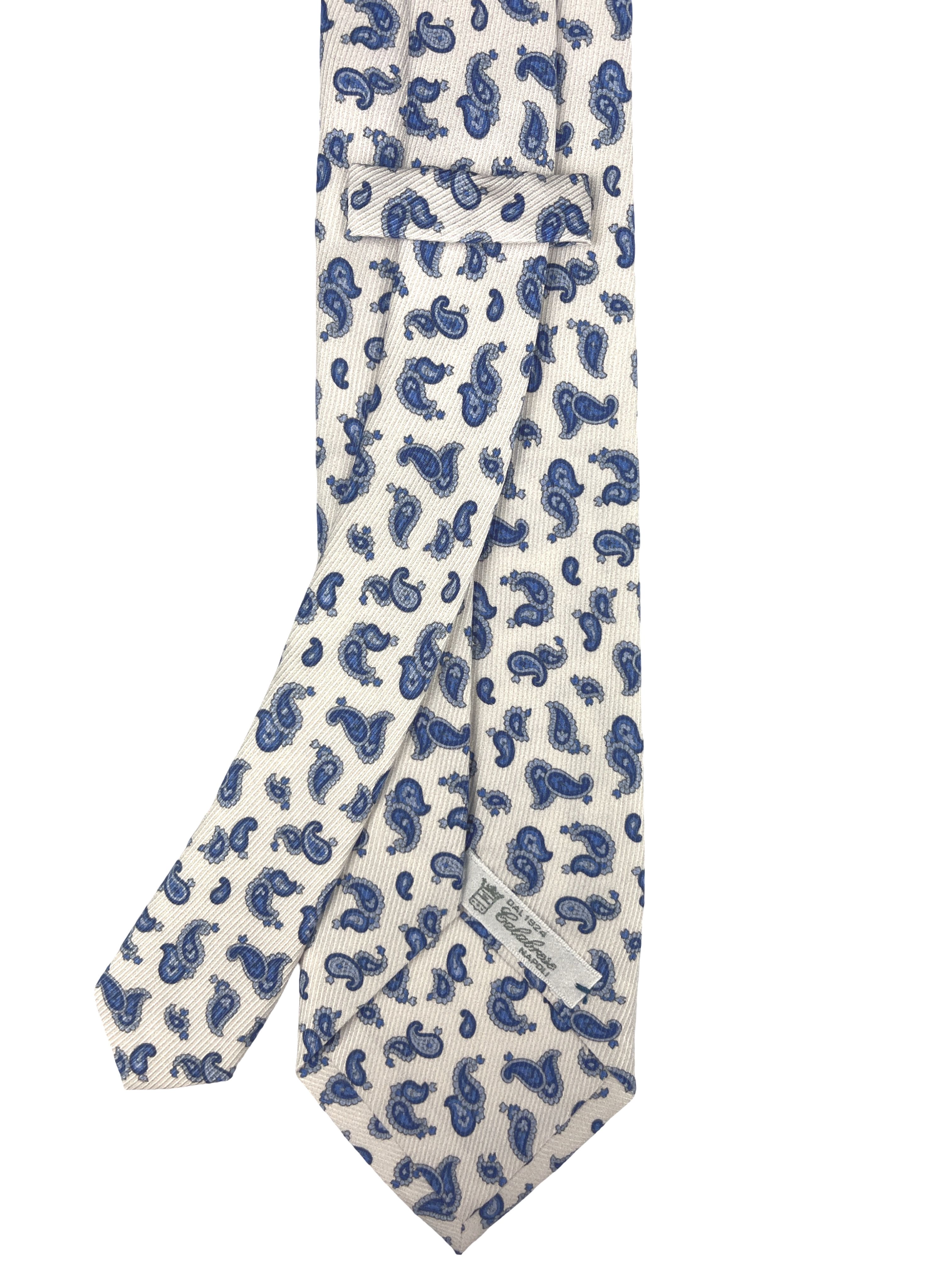 COLOR WHITE WITH A LIGHT BLUE PAISLEY PATTERN